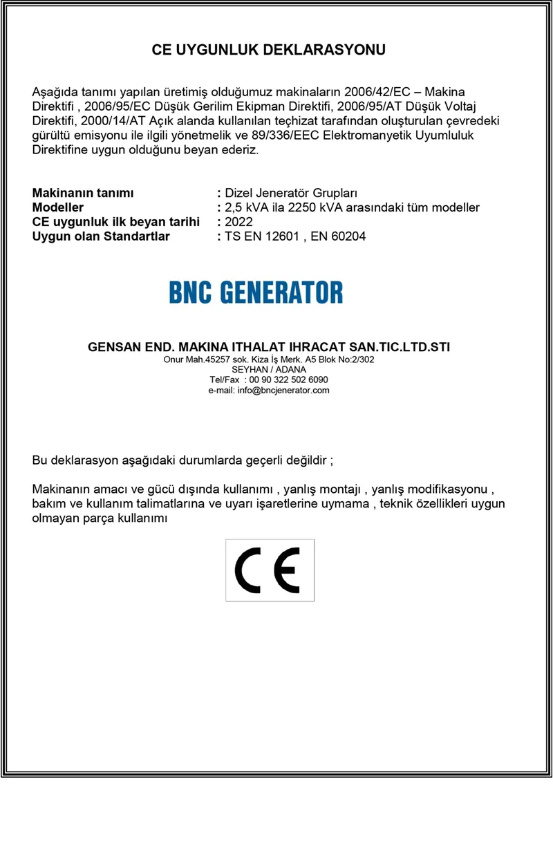 Projelerinizde konumlandıracağınız jeneratöre karar vermeden önce BNC jeneratör ailesinden fiyat teklifi almanızı tavsiye ederiz.